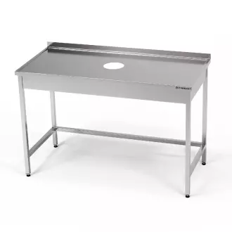Stó³³ s otvorem pro odpad z nerezové oceli J4 o rozměrech 190x70x85 cm. Průměr otvoru je 15 cm.