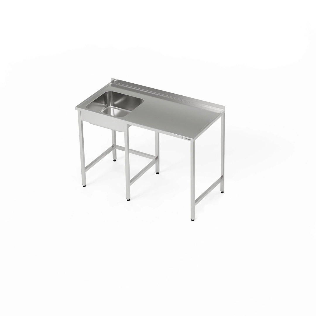 Stůl je vyroben z vysoce kvalitní nerezové oceli J4, což zaručuje odolnost proti mechanickému poškození a korozi i ve vlhkém prostředí. Konstrukce založená na uzavřených profilech zajišťuje stabilitu a bezpečnost používání. Dřezová komora může být umístěna vlevo nebo vpravo, což umožňuje přizpůsobení nábytku individuálním potřebám kuchyně. Prostor na myčku je na opačné straně a nad ním je pracovní deska, která zvyšuje funkčnost stolu. Další spodní police pod dřezem slouží k uložení čisticích prostředků nebo drobných doplňků.