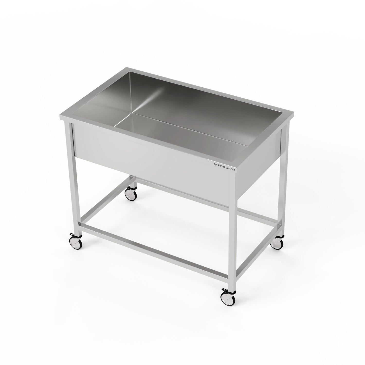 Nerezový pojízdný dřez FORGAST je mobilní gastronomické umyvadlo navržené pro profesionální kuchyně, jídelny a restaurace. Vyniká robustní konstrukcí z nerezové oceli, hlubokou vanou o výšce 40 cm a snadnou manipulací díky kolečkům. Ideální pro mytí velkých nádob, kontejnerů nebo kuchyňského vybavení, uplatní se všude tam, kde je vyžadována flexibilita a udržení vysoké úrovně hygieny.