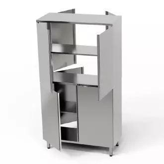 Průchozí dělená skříň o rozměrech 80x50x180 cm z nerezové oceli J4. V každé části skříně je 1 półka.