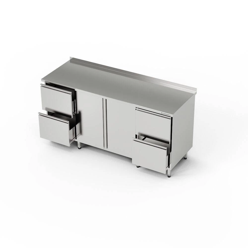 Nerezový pracovní stůl se skříňkou a 2 bloky po 2 zásuvkách 210x60x85 cm