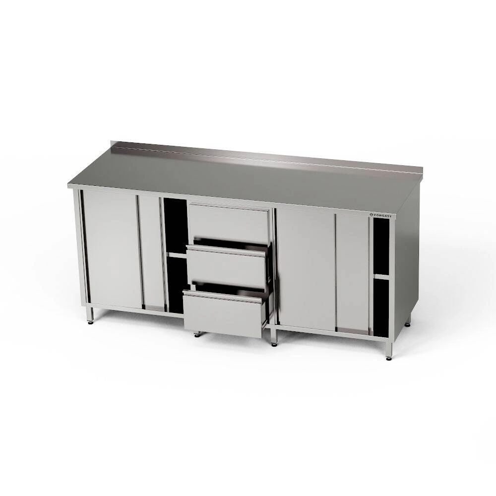 Nerezový pracovní stůl se 2 skříňkami a 3 zásuvkami 280x70x85 cm