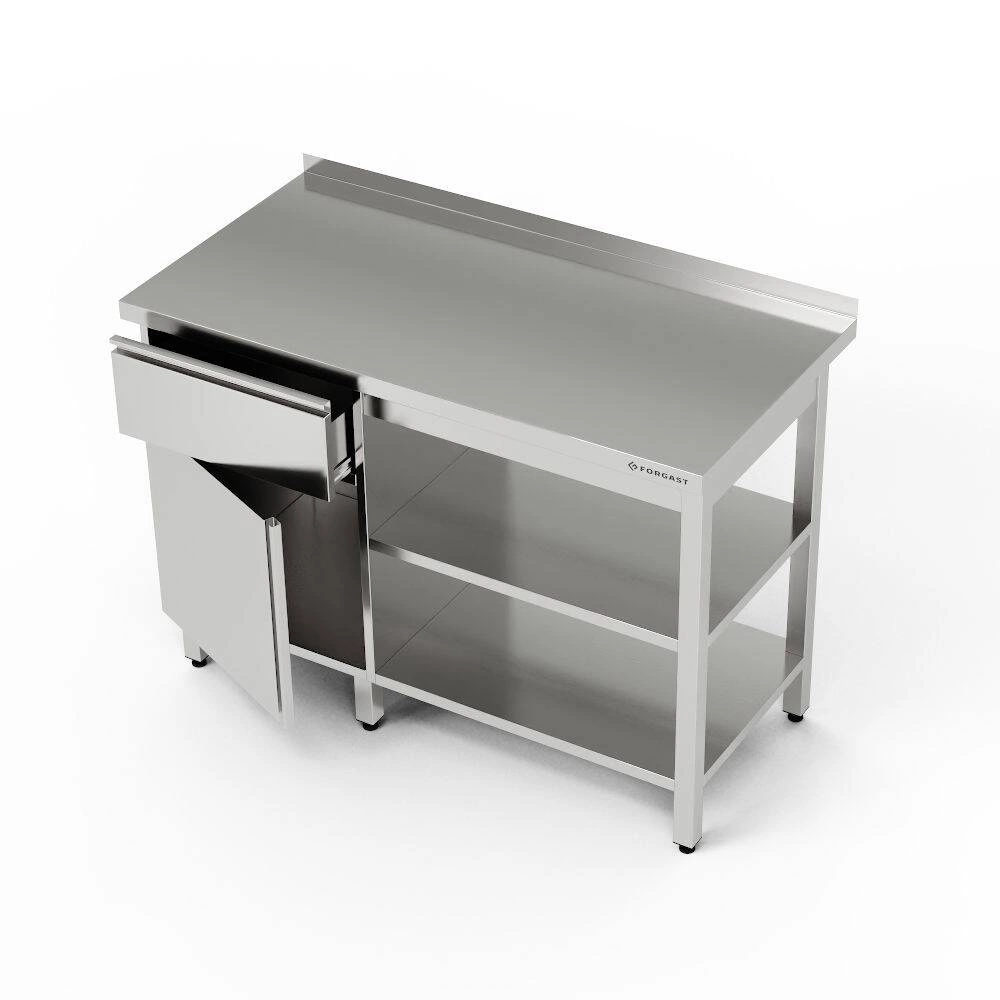 Nerezový pracovní stůl se skříňkou, zásuvkou a 2 policemi 220x70x85 cm