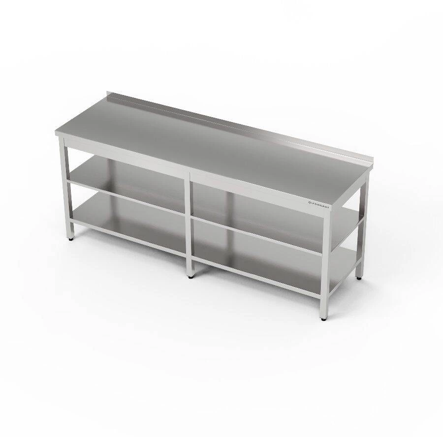 Nerezový pracovní stůl se dvěma policemi 200x70x85 cm
