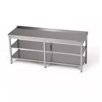 Popis k výrobku: Nerezový pracovní stůl se dvěma policemi 210x70x85 cm