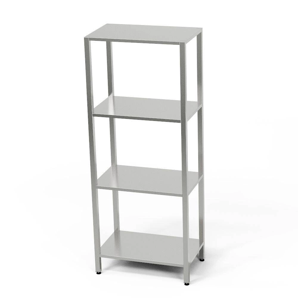 - Nerezová ocel J4 – zaručuje odolnost proti korozi a snadnou údržbu čistoty. Díky tomu je regál ideální pro prostory s vysokými hygienickými nároky, jako jsou kuchyně, chladírny nebo laboratoře.