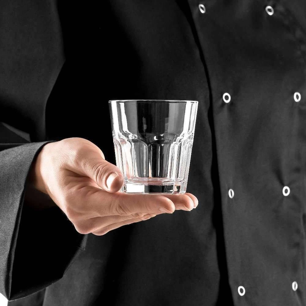 - Wysoka odporność na uszkodzenia – szklanka została zaprojektowana z myślą o intensywnym użytkowaniu w restauracjach, barach i na eventach, dzięki czemu nie ulega łatwo zarysowaniom czy stłuczeniom nawet podczas częstego mycia i użytkowania.