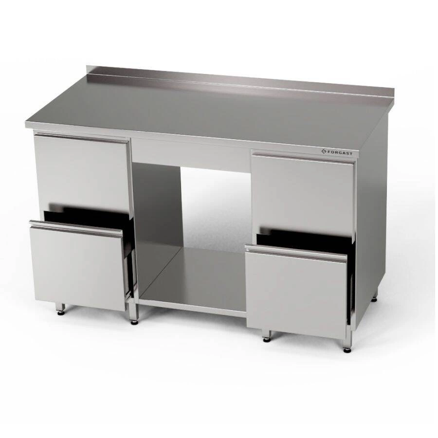 Nerezový pracovní stůl s policí a 2 bloky po 2 zásuvkách 250x60x85 cm