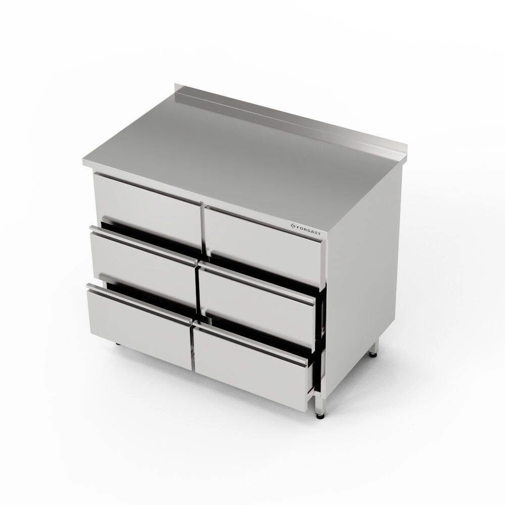 Pracovní stůl z nerezové oceli se 6 zásuvkami o rozměrech 80x60x85 cm. Stó³³ z nerezové oceli J4.