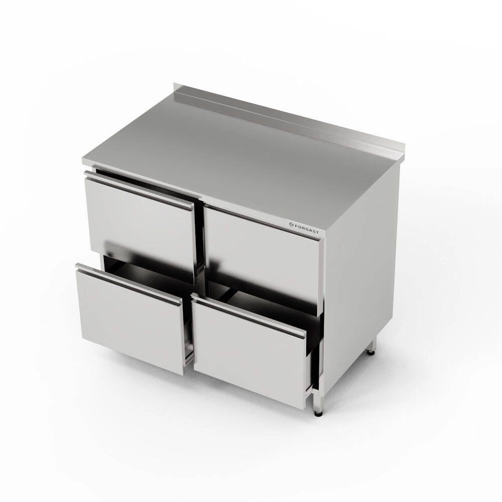 Pracovní stůl z nerezové oceli se 4 zásuvkami o rozměrech 80x70x85 cm. Stó³³ z nerezové oceli J4.