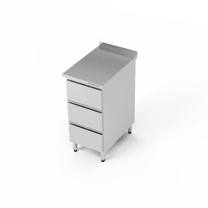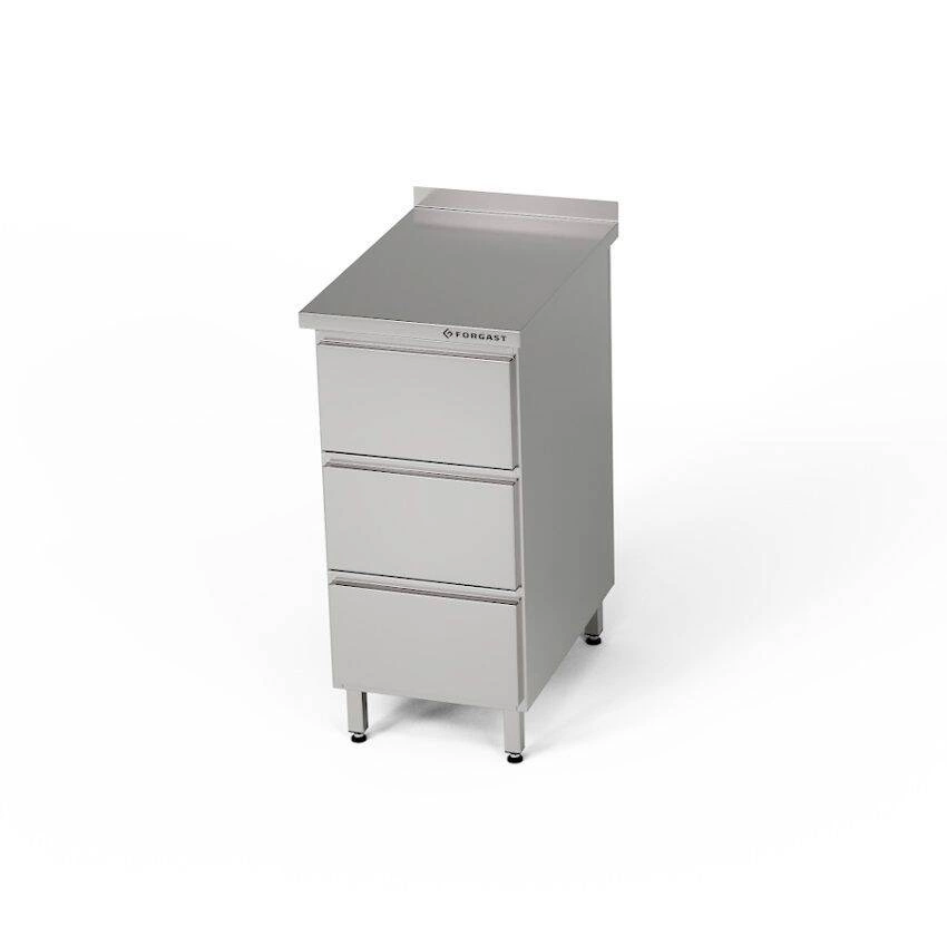 Pracovní stůl z nerezové oceli s blokem se 3 zásuvkami o rozměrech 40x70x85 cm. Stó³³ z nerezové oceli J4.