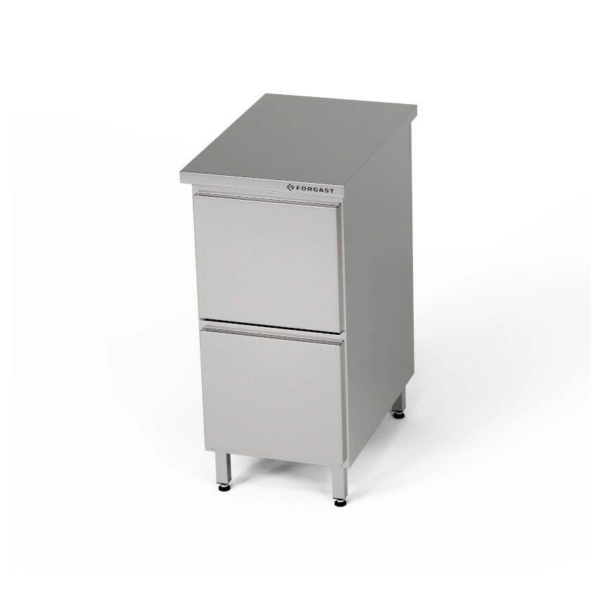 Pracovní stůl z nerezové oceli s blokem se 2 zásuvkami o rozměrech 40x60x85 cm. Stó³³ z nerezové oceli J4.
