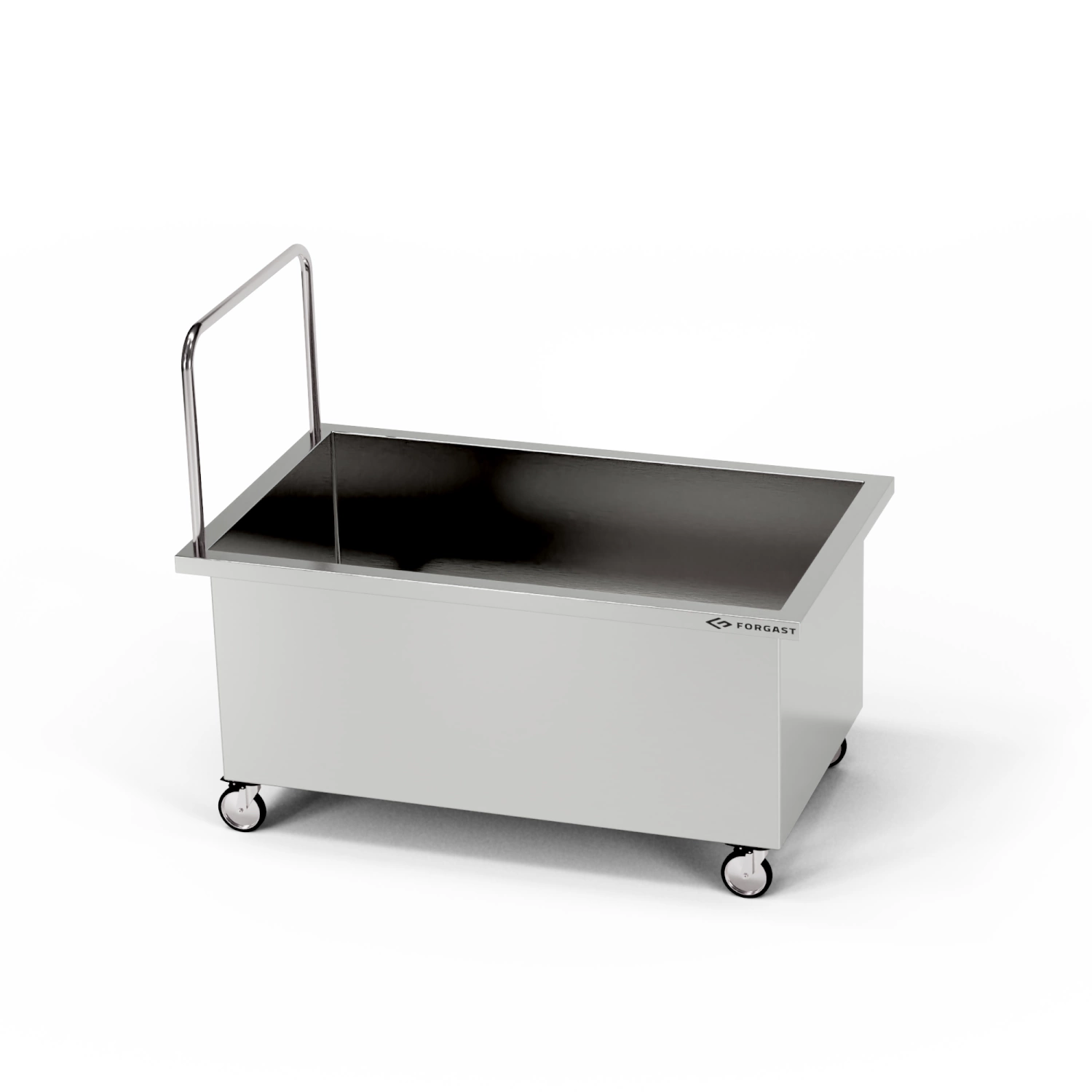 Nerezový pojízdný jednodílný dřez nízký FORGAST je profesionální dřez určený pro intenzivní použití v gastronomii. Jeho hlavními přednostmi jsou mobilita díky namontovaným kolečkům a hluboká, prostorná komora o výšce 40 cm. Ideální pro restaurace, velkokapacitní kuchyně nebo cateringová zázemí, kde je potřeba mýt velké nádoby a kuchyňské vybavení.
