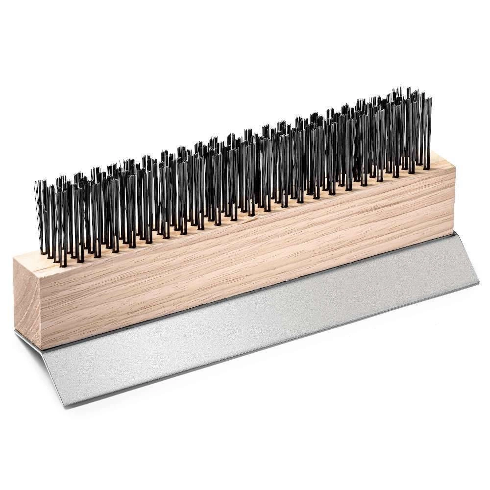 • Pevné drátěné štětiny – zajišťují účinné čištění i silně znečištěných povrchů, ideálně odstraňují připálené zbytky ze šamotu.