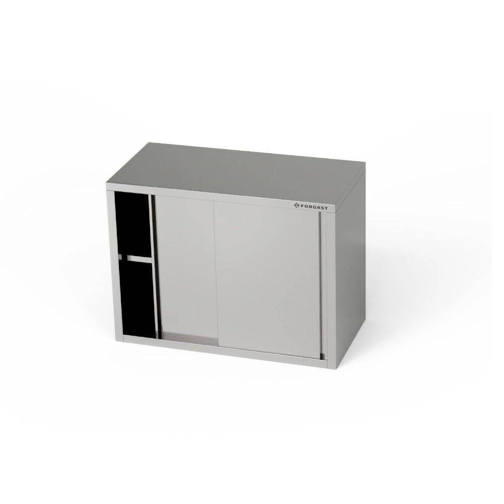 Nástěnná skříňka s posuvnými dveřmi s rozměry 90x40x60 cm. Vyrobeno z nerezové oceli J4. Tloušťka plechu 0,8 až 1 mm. Uvnitř skříně je jedna pólavička.