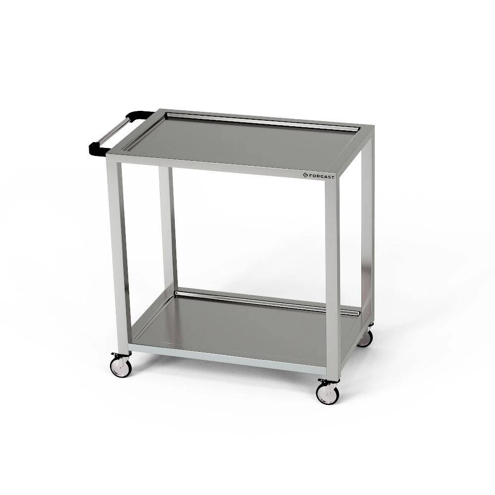 Robustní svařovaná konstrukce zajišťující stabilitu. Vyražené, tvarované hrany na všech stranách zabraňují sklouznutí přepravovaného zboží. Vybaveno 4 otočnými kolečky (2 s brzdou).