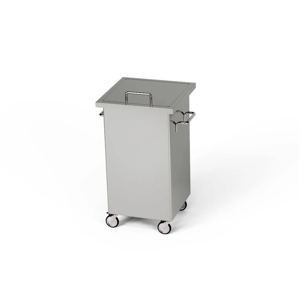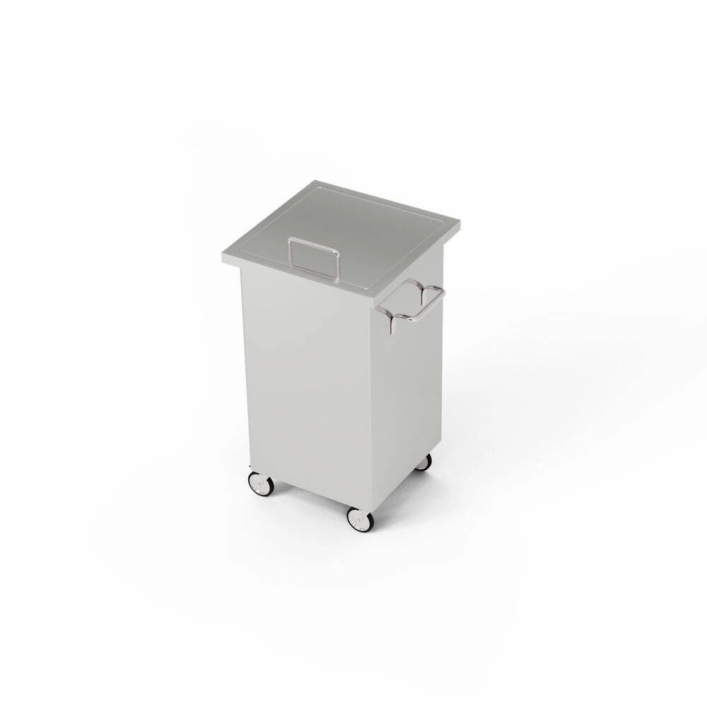 Mobilní odpadkový koš od společnosti Forgast o rozměrech 45x35x80 cm z nerezové oceli J4.Má víko s rukojetí, které blokuje nepříjemné pachy. Robustní svařovaná konstrukce zajišťující stabilitu. Boční rukojeť na jedné straně kontejneru. Kontejner je vybaven 4 otočnými kolečky.