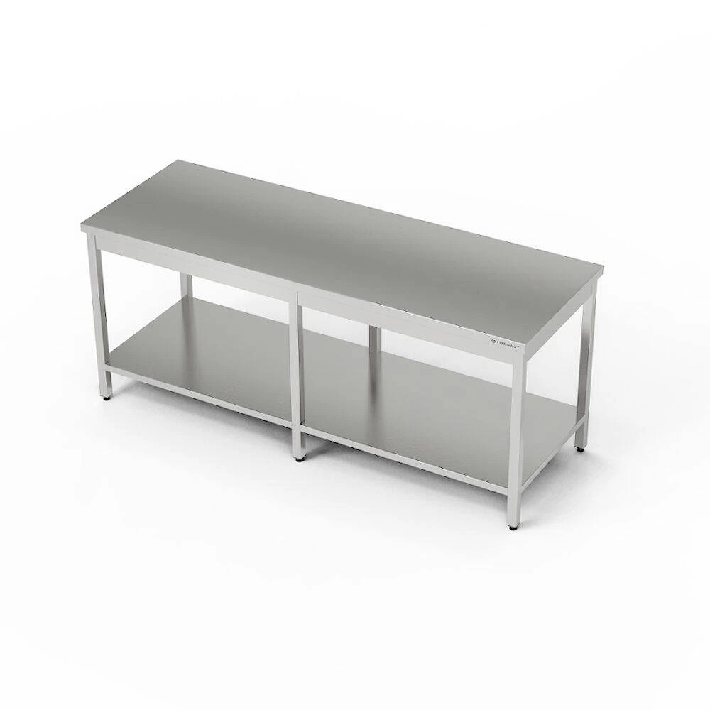 Popis k výrobku: Nerezový centrální pracovní stůl s policí 190x80x85 cm