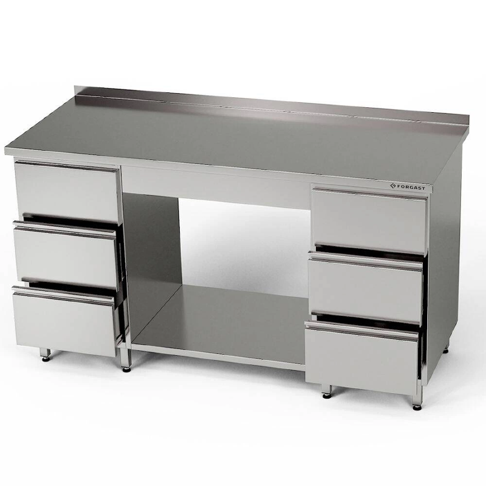 Nerezový pracovní stůl se 2 bloky po 3 zásuvkách a policí 170x60x85 cm