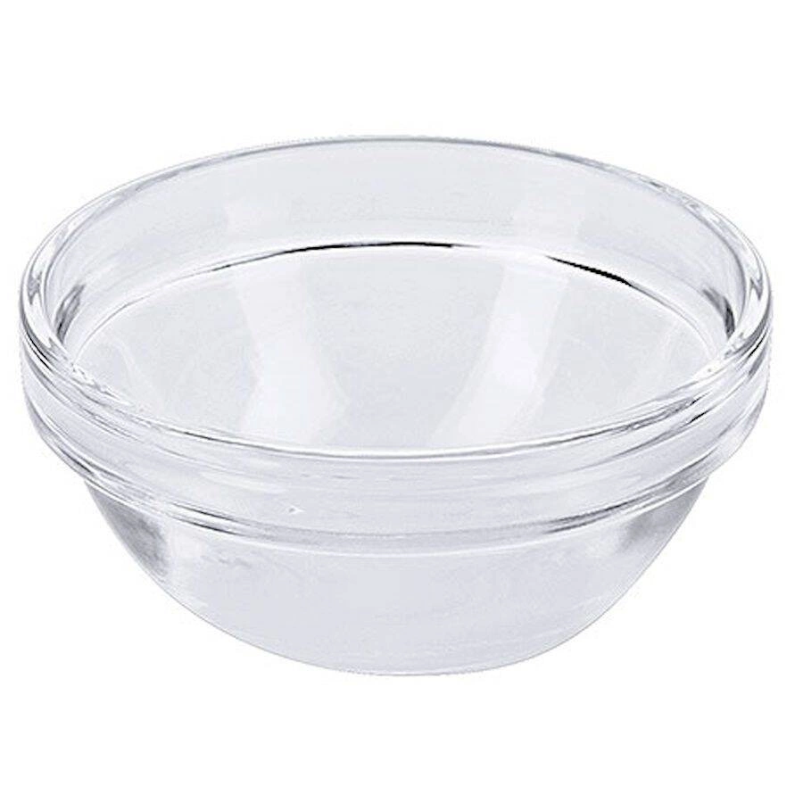 Skleněná mísa z tvrzeného skla. Možnost stohování. Vnitřní průměr 7 cm.