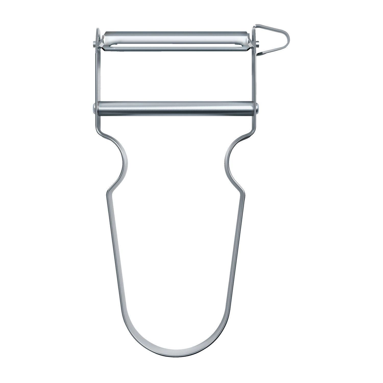 STAR škrabka s hladkým ostřím od společnosti VictorinoxŠkrabka je vyrobena výhradně z vysoce kvalitní nerezové oceli. Škrabka má pohyblivou, mimořádně účinnou čepel, která loupe slupku velmi tence a zachovává všechny vitamíny obsažené na povrchu zeleniny a ovoce. Škrabka je 11 cm dlouhá a 6,5 cm široká. Škrabku nelze mýt v myčce nádobí.