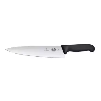 Kuchyňský nůž se širokou čepelí marki Victorinox. Je ideální pro krájení masa, ovoceóa zeleniny. Čepel nože je vyrobena z nerezové oceli s mimořádnou odolností, takže zůstává dlouho ostrá. Čepel je dlouhá 25 cm a je vyrobena z válcované nerezové oceli. Protiskluzová rukojeť FIBROX v černé barvě zaručuje bezpečnou práci. Díky ergonomickému tvaru se dobře drží v ruce. Nůž lze sterilizovat při maximální teplotě 110 °C. Nóy lze mýt v myčce nádobí.