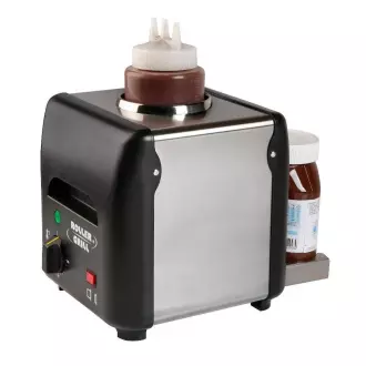 Ohřívač omáček a čokolády značky ROLLER GRILL je profesionální elektrické zařízení určené k udržování tekutých přísad, jako je čokoláda, omáčky nebo sýr, v teplém stavu. Přístroj se vyznačuje kompaktními rozměry, pohodlnou regulací teploty a možností rychlého dávkování. Ideální volba pro cukrárny, palačinkárny a gastronomické provozy nabízející sladké i slané občerstvení.
