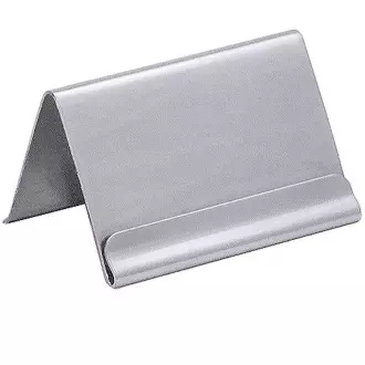 Stojan na karty se záhybem. Karty o maximální velikosti 5,9x3,5 cm. Vyrobeno z leštěné nerezové oceli.