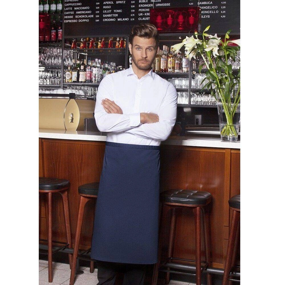 Zapaska kelnerska bistro basic marki Karlowsky. Námořnická modrá barva. Vyrobeno z 65 % polyesteru a 35 % bavlny. Keprová vazba. Rozměry 100x75 cm. Lze prát v pračce a čistit v čistírně. Vhodné k žehlení.