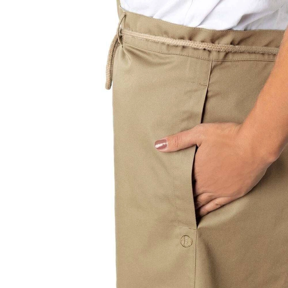 Vyrobeno ze směsi 35 % bavlny a 65 % recyklovaného polyesteru. Šetrné k životnímu prostředí. Moderní keprová vazba. Odolná a snadno čistitelná kamenně šedá barva. Boční kapsy pro snadný přístup do vlastních kapes kalhot. Pásek z kontrastních šňůrek . Prošívání na poutkách a kapsách umocňuje přirozený vzhled a styl náhradních.
