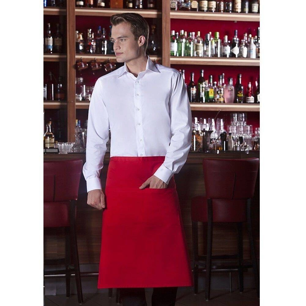 Základní číšnická zavinovačka s kapsou od Karlowského. Červená barva. Vyrobeno z 65 % polyesteru a 35 % bavlny. Keprová vazba. Rozměry 70x70 cm. Pásek na zavázání ze stejného materiálu jako punčochy. Blokování švů na pásech zástěry pro větší odolnost. Zástěra má všitou kapsu o rozměrech 40x20 cm se 2 praktickými přihrádkamiód. Lze prát v pračce a čistit v čistírně. Vhodná k žehlení.