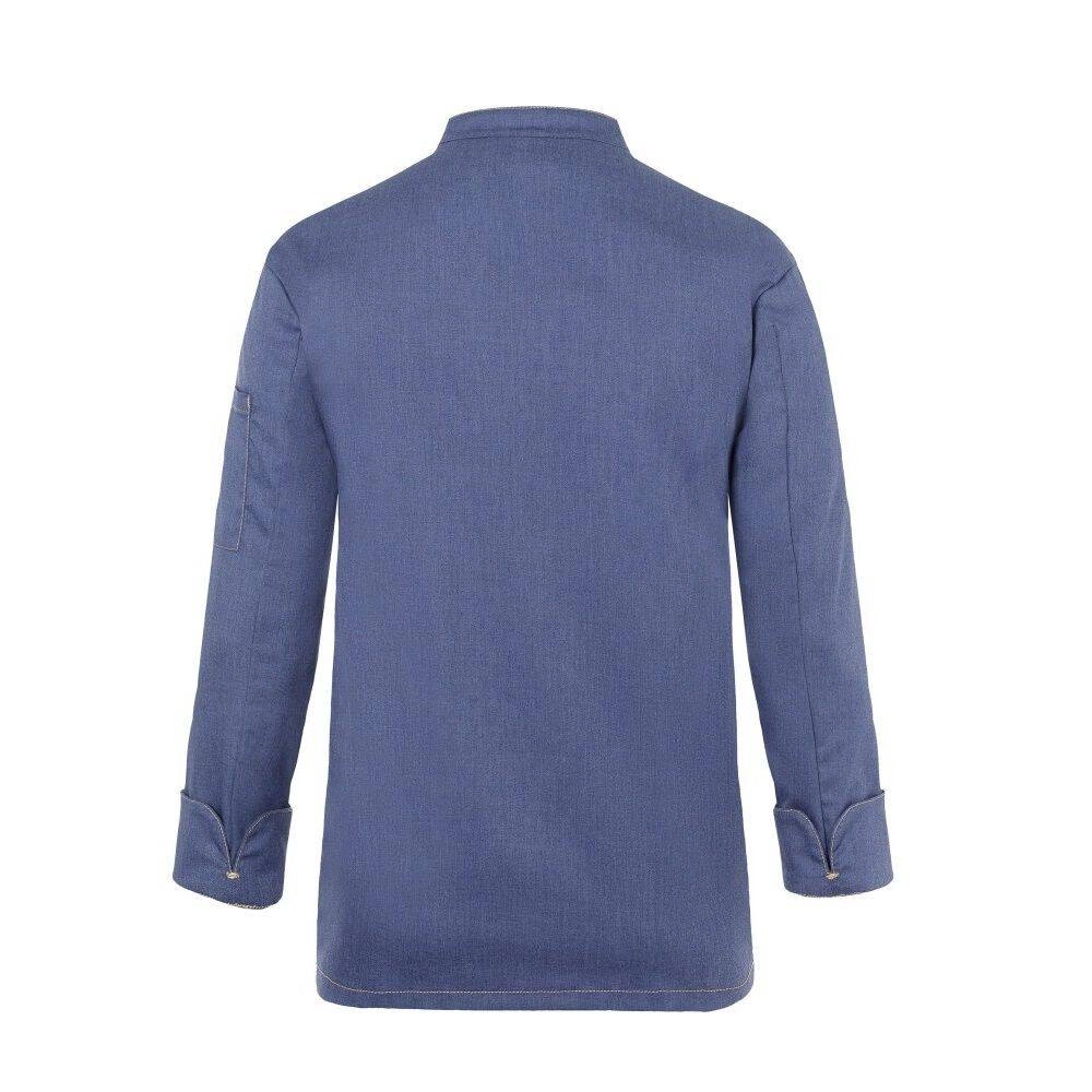 Pánská mikina pro kuchaře ve stylu džínoviny od značky Karlowsky. Barva vintage-modrá. Vyrobeno v 65 % polyester a 35 % bavlna. . Diagonální vazba. Módní mikina pro kuchaře v džínovém stylu s kontrastním prošíváním, rozříznutými manžetami a kapsou na levém rukávu. Asymetricky zapínaná jednořadová mikina s 5 knoflíky a patentkami. Vhodné pro průmyslové praní a chemické čištění. Nebělit. Dostupné velikosti od 46 do 74.