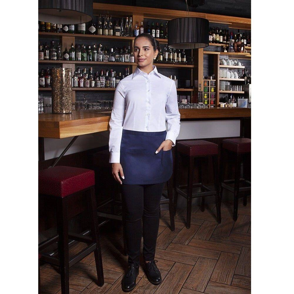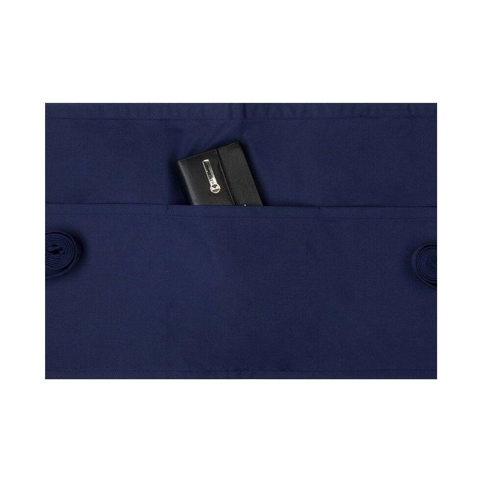 Základní zavinovačka s kapsami Karlowsky. Námořnická modrá barva. Vyrobeno z 65 % polyesteru a 35 % bavlny. Keprová vazba. Rozměry 60 x 35 cm. Zavinovačka s bederním pásem ze stejného materiálu. Pas vyztužený přídavným opletením. Zasouvací kapsa o rozměrech 60 x 22 cm přes celou šířku pasu se 3 praktickými přihrádkami (každá přihrádka 20 x 22 cm). Lze prát na 60 °C. . Nebělit. Nesušte v sušičce. Žehlete při maximální teplotě 150 °C °C.