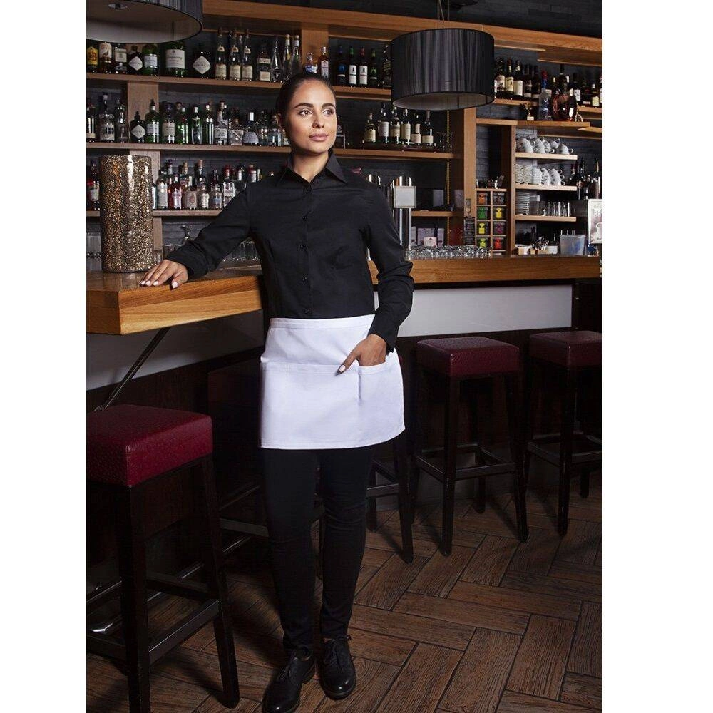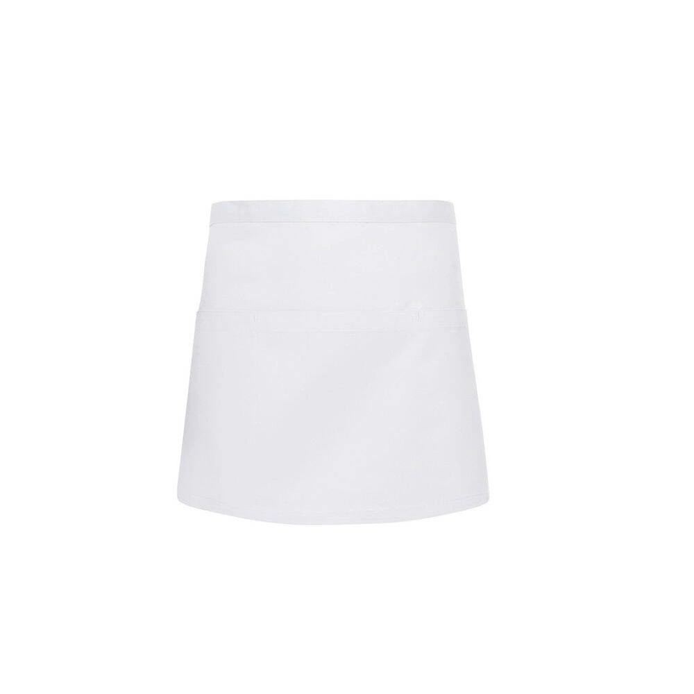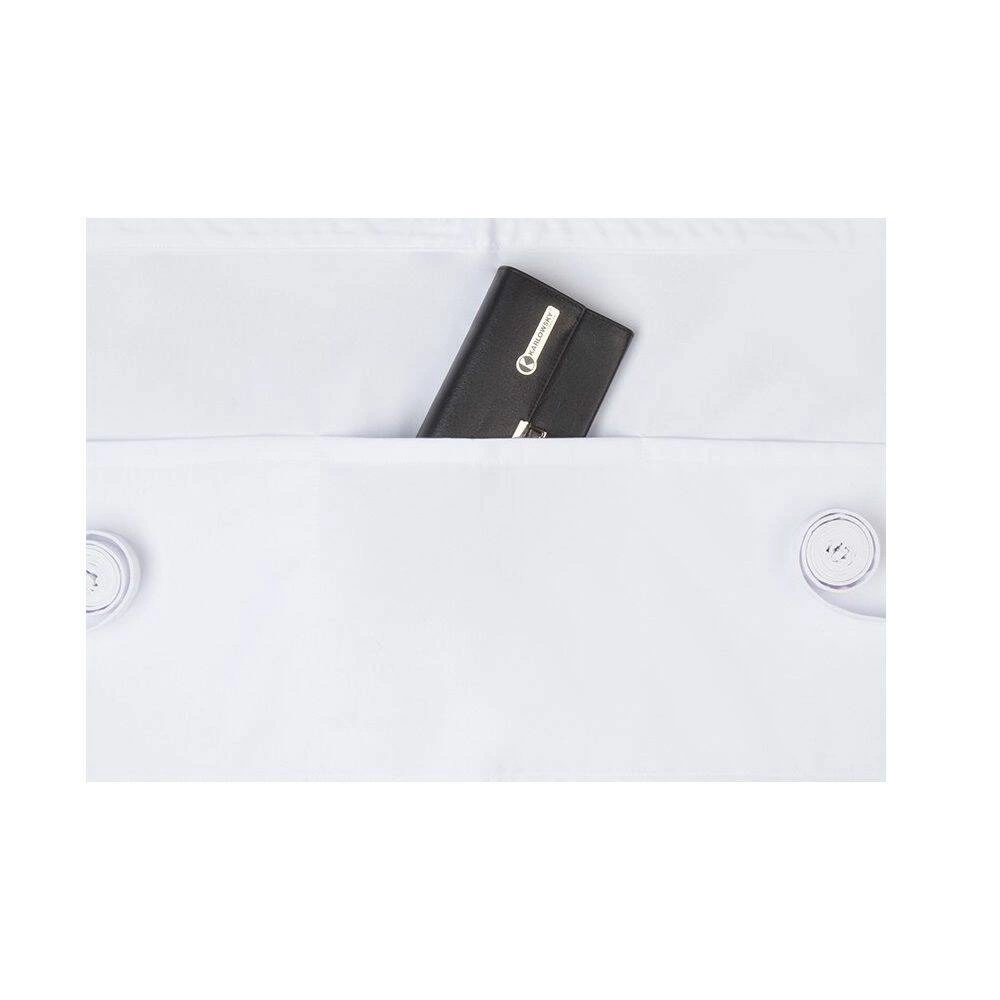 Základní zavinovačka s kapsami Karlowsky. Bílá barva. Vyrobeno z 65 % polyesteru a 35 % bavlny. Keprová vazba. Rozměry 60 x 35 cm. Zavinovačka s bederním pásem ze stejného materiálu. Pas vyztužený přídavným opletením. Zasouvací kapsa o rozměrech 60 x 22 cm přes celou šířku pasu se 3 praktickými přihrádkami (každá přihrádka 20 x 22 cm). Lze prát na 60 °C. . Nebělit. Nesušte v sušičce. Žehlete při maximální teplotě 150 °C °C.