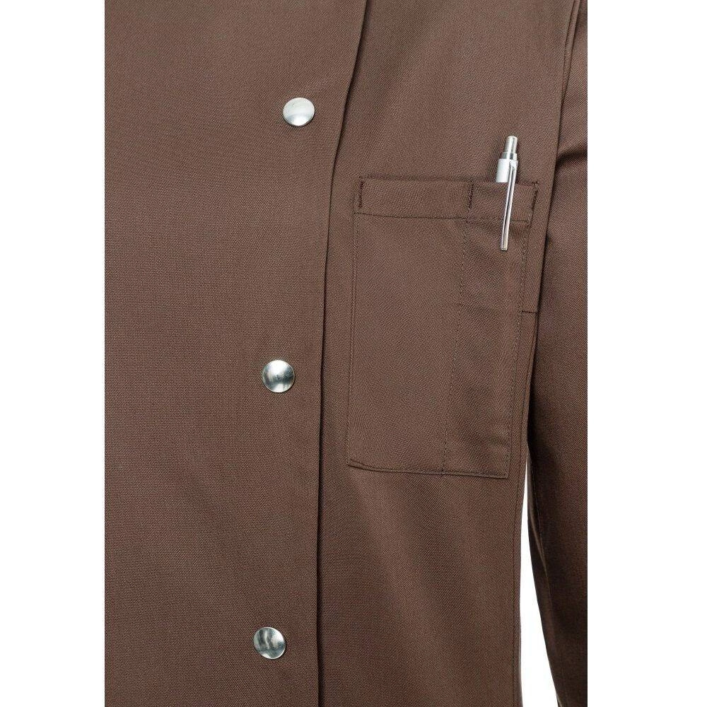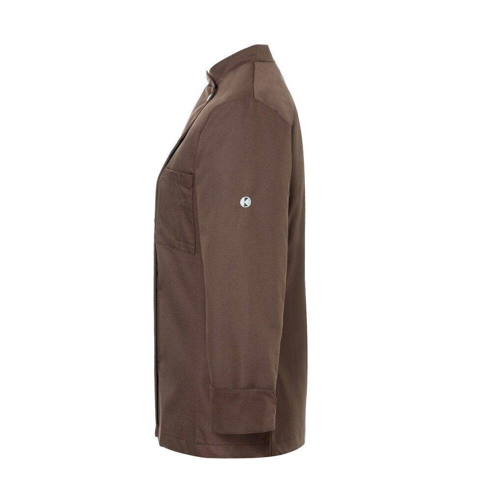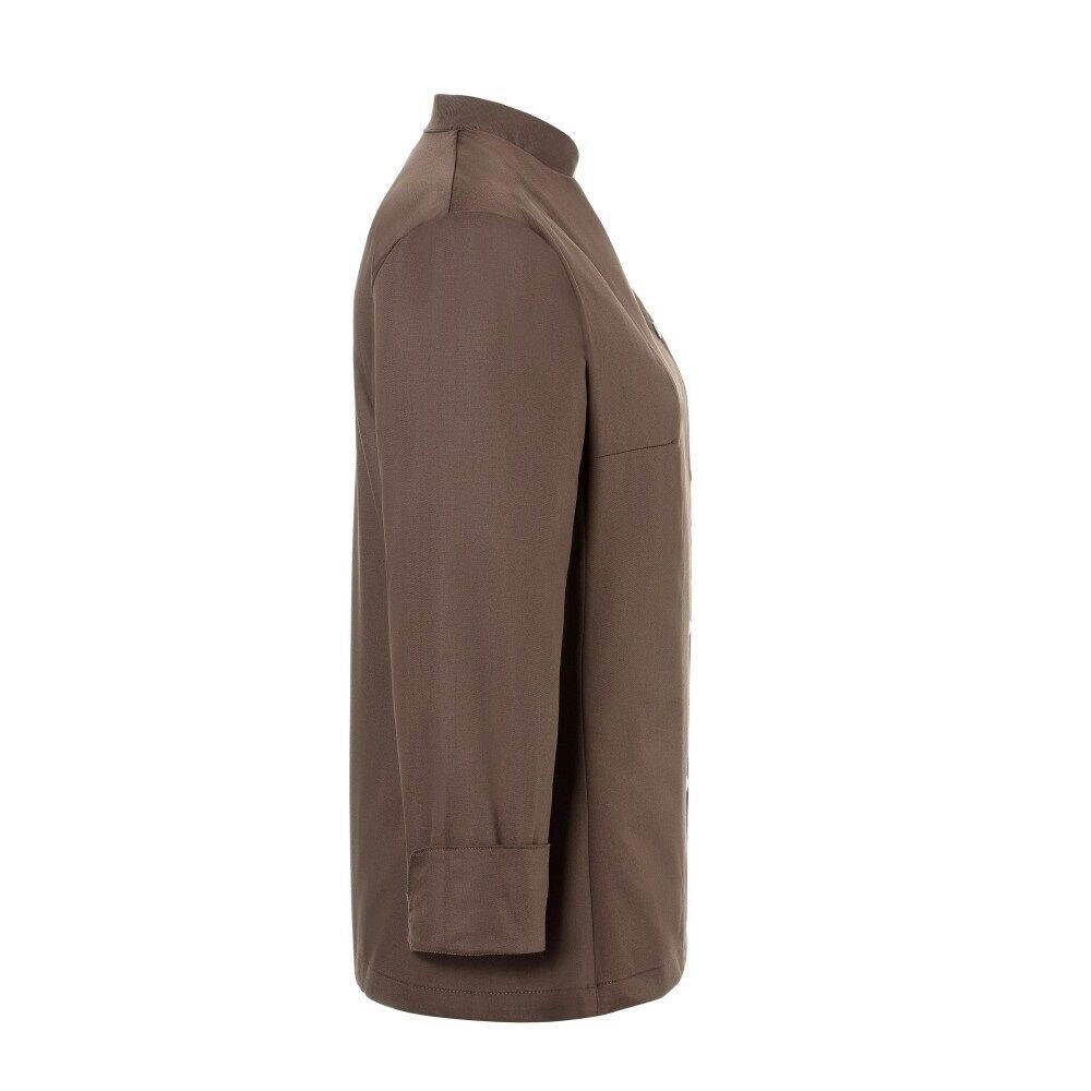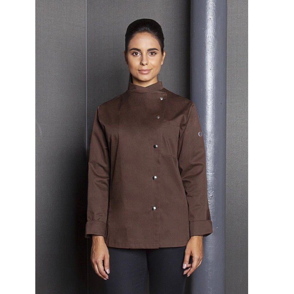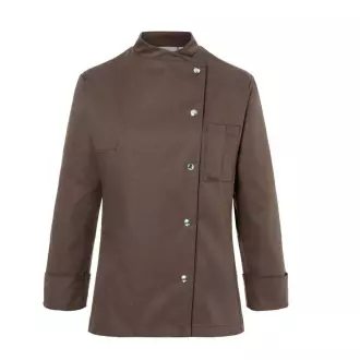 Dámská mikina Larissa Chef od značky Karlowsky. Světle hnědá barva. Vyrobeno z 65 % polyesteru a 35 % bavlny. Keprová vazba. Vypasovaná kuchařská blůza s dlouhými rukávy. Přiléhavý střih zajišťují záševky na prsou a boční švy na přední a zadní straně mikiny. Na levé straně na hrudi je kapsa. Blůza se zapíná na 5 knoflíkóů a patentky. Lze ji průmyslově prát a bělit. K dispozici jsou velikosti od 34 do 50.