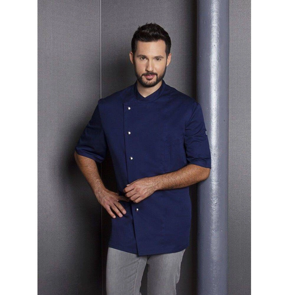 Pánská kuchařská mikina Gustav značky Karlowsky. Námořnická modř. Vyrobeno v 65 % polyester a 35 % bavlna. . Diagonální vazba. Mikina s krátkým rukávem v regular fit střihu. Praktická kapsa na levé straně hrudi. Zapínání na 5 knoflíků a patentky. Vhodné pro průmyslové praní, chemické čištění a bělení. Dostupné velikosti od 44 do 66.