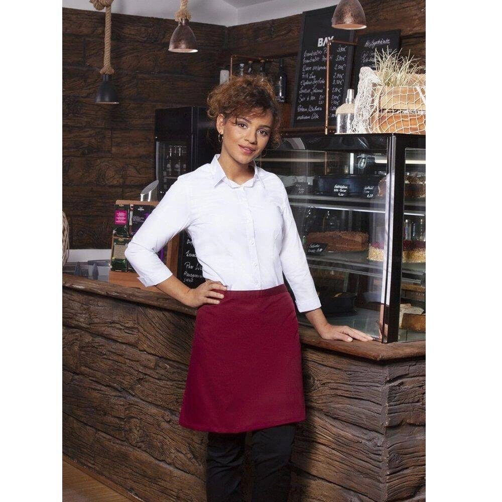 Zapaska Basic Karlowsky. Bordó barva. Vyrobeno z 65 % polyesteru a 35 % bavlny. Keprová vazba. Rozměry 70 x 55 cm. Zavinovačka s bederním pásem ze stejného materiálu. Pásek vyztužený dalšími napínacími body. Lze prát na 60 °C. . Nebělit. Nesušte v sušičce. Žehlete při maximální teplotě 150 °C °C.