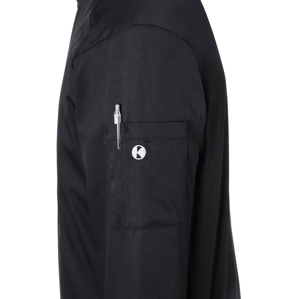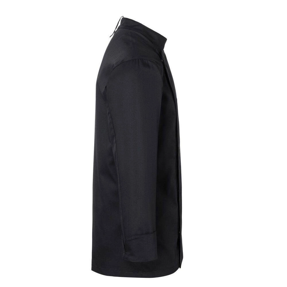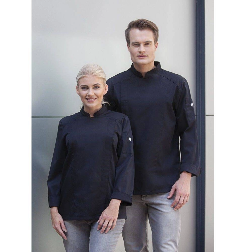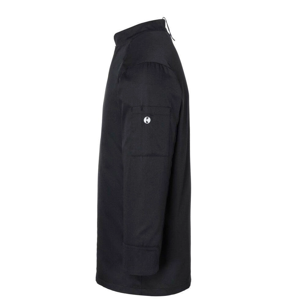 Pánská mikina Noah pro kuchaře od společnosti Karlowsky. Černá barva. Vyrobeno v 50 % polyester a 50 % bavlna. . Diagonální vazba. Elegantní pánská mikina pro kuchaře se skrytým zapínáním na knoflíky. Vyrobena z velmi lehkého materiálu, který se dokonale hodí do teplých podmínek. Optimální pohodlí při nošení zajišťuje vypasovaný střih. Na zadní straně límce je praktický pásek na zástěru, který zabraňuje sklouznutí. Manžety s rozparkem. Na levém rukávu je našita kapsa s přihrádkou na pero. Vhodné pro průmyslové praní a chemické čištění. Lze bělit. Dostupné velikosti od 46 do 64.