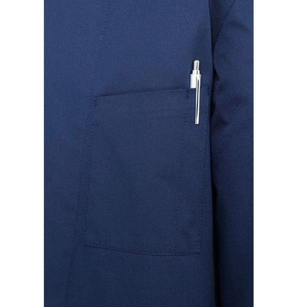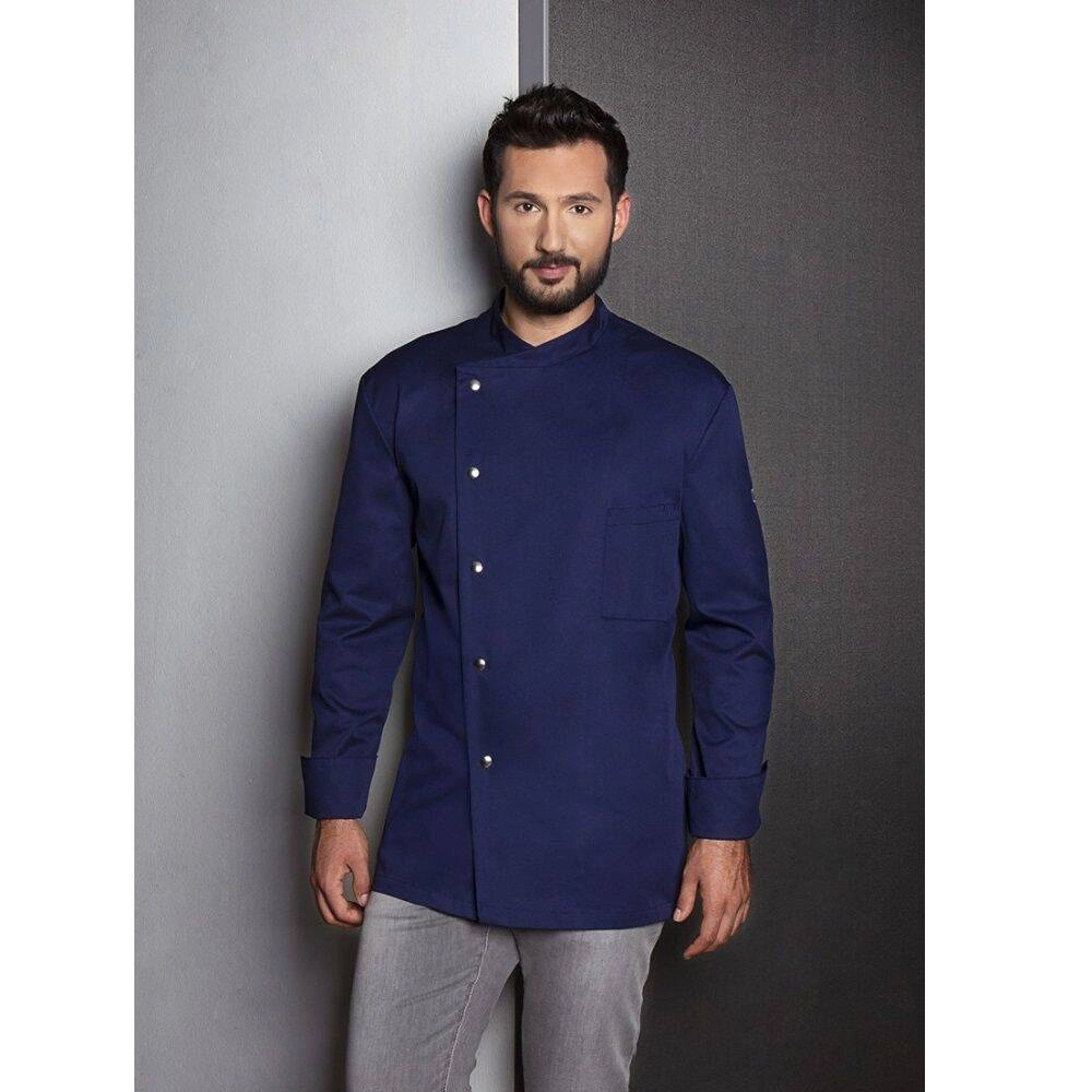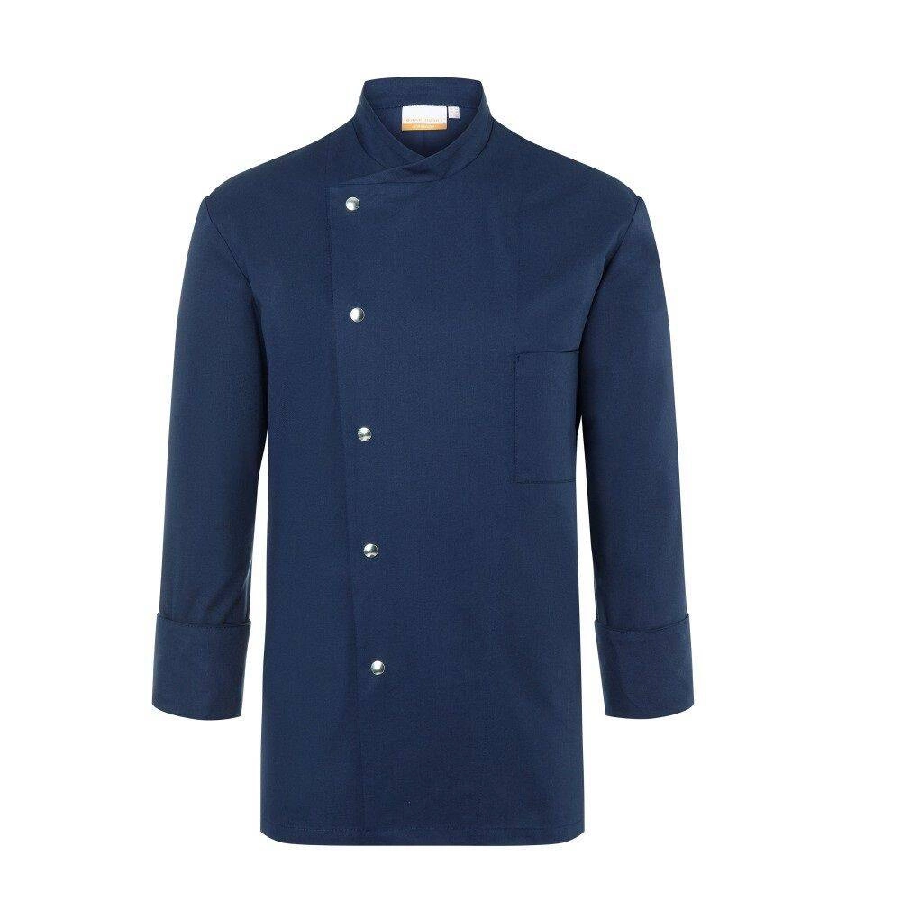 Pánská mikina Lars chef od značky Karlowsky. Námořnická modrá barva. Vyrobeno z 65 % polyesteru a 35 % bavlny. Keprová vazba. Kuchařská blůza pravidelného střihu díky vídeňským švům na zádech. Další akcenty v podobě rozparků na manžetách a kapsy na levé straně prsou. Mikina s pěti knoflíkyóa patentkami. Lze průmyslově prát. Nebělit. Dostupné velikosti od 44 do 66.