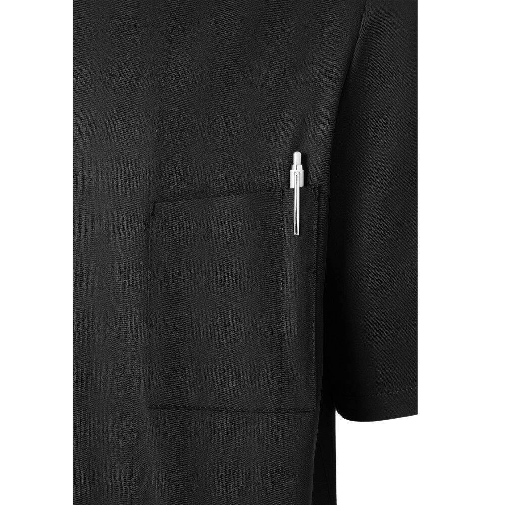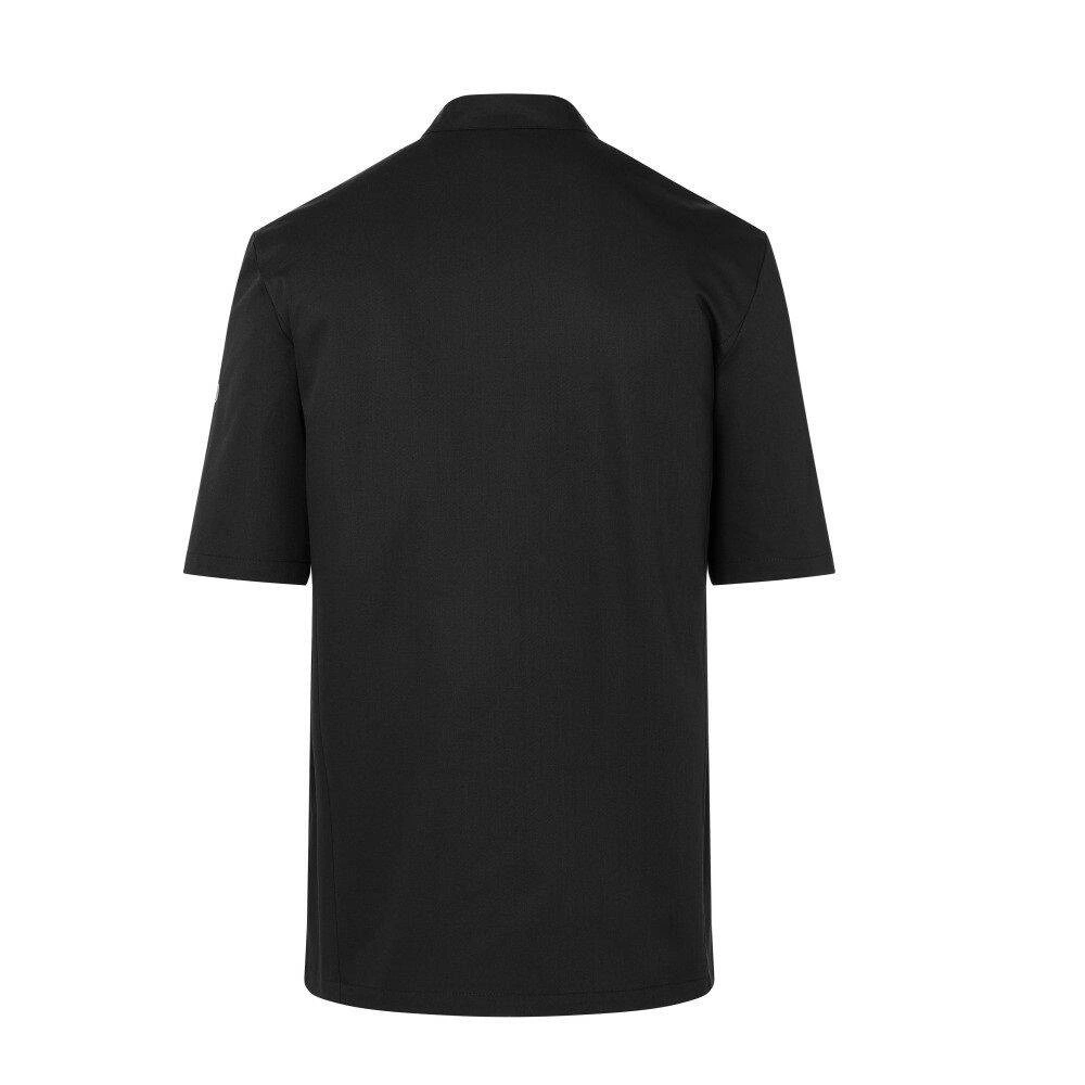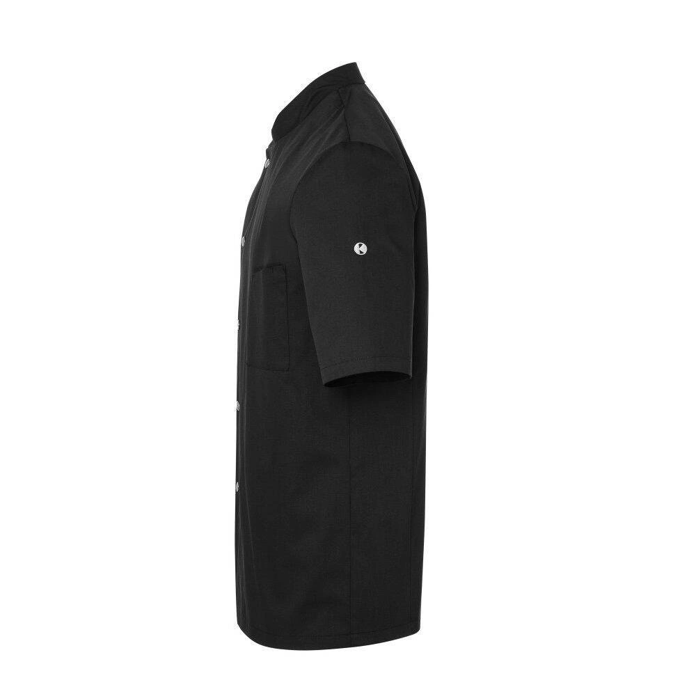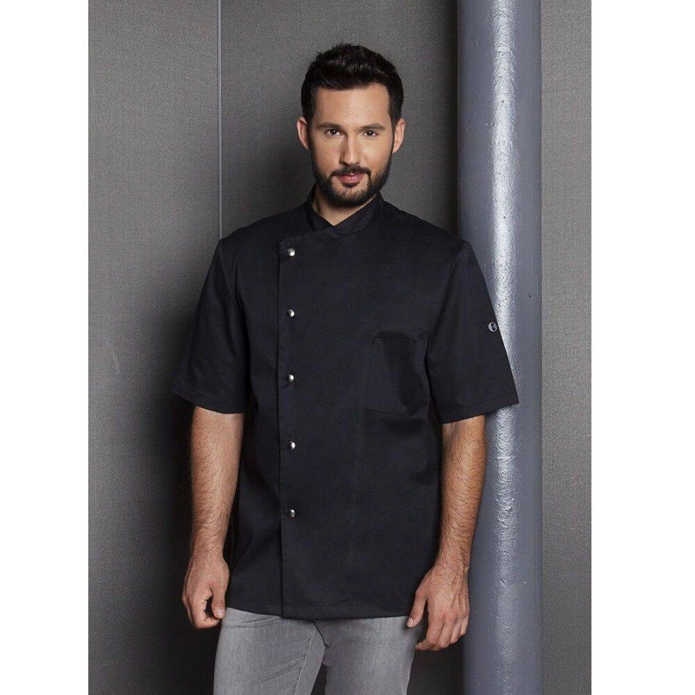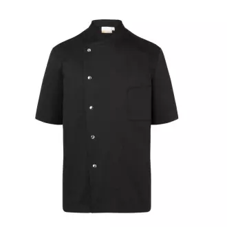 Pánská kuchařská mikina Gustav značky Karlowsky. Černá barva. Vyrobeno v 65 % polyester a 35 % bavlna. . Diagonální vazba. Mikina s krátkým rukávem v regular fit střihu. Praktická kapsa na levé straně hrudi. Zapínání na 5 knoflíků a patentky. Vhodné pro průmyslové praní, chemické čištění a bělení. Dostupné velikosti od 44 do 66.