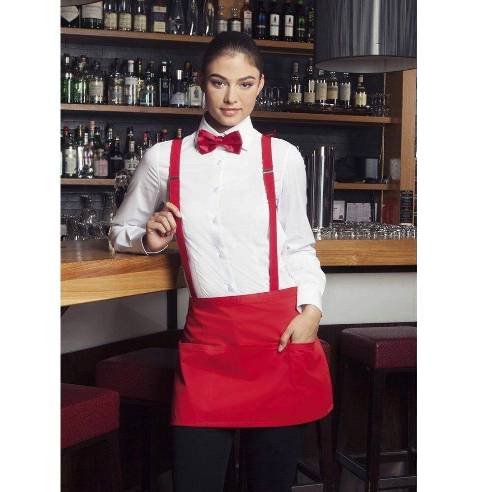 Základní zavinovačka s kapsami Karlowsky. Červená barva. Vyrobeno z 65 % polyesteru a 35 % bavlny. Keprová vazba. Rozměry 60 x 35 cm. Zavinovačka s bederním pásem ze stejného materiálu. Pas vyztužený přídavným opletením. Zasouvací kapsa o rozměrech 60 x 22 cm přes celou šířku pasu se 3 praktickými přihrádkami (každá přihrádka 20 x 22 cm). Lze prát na 60 °C. . Nebělit. Nesušte v sušičce. Žehlete při maximální teplotě 150 °C °C.