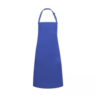 Základní kuchařská zástěra značky Karlowsky. Modrá barva. Vyrobeno v 65 % polyester / 35 % bavlna. . Diagonální vazba. Rozměry 75x90 cm. Zástěra s popruhy z materiálu zástěry se zesílenými napínacími body - popruh na krk se sponou pro nastavení délky cca 70 cm. Lze prát v pračce a čistit chemicky. Vhodné k žehlení.