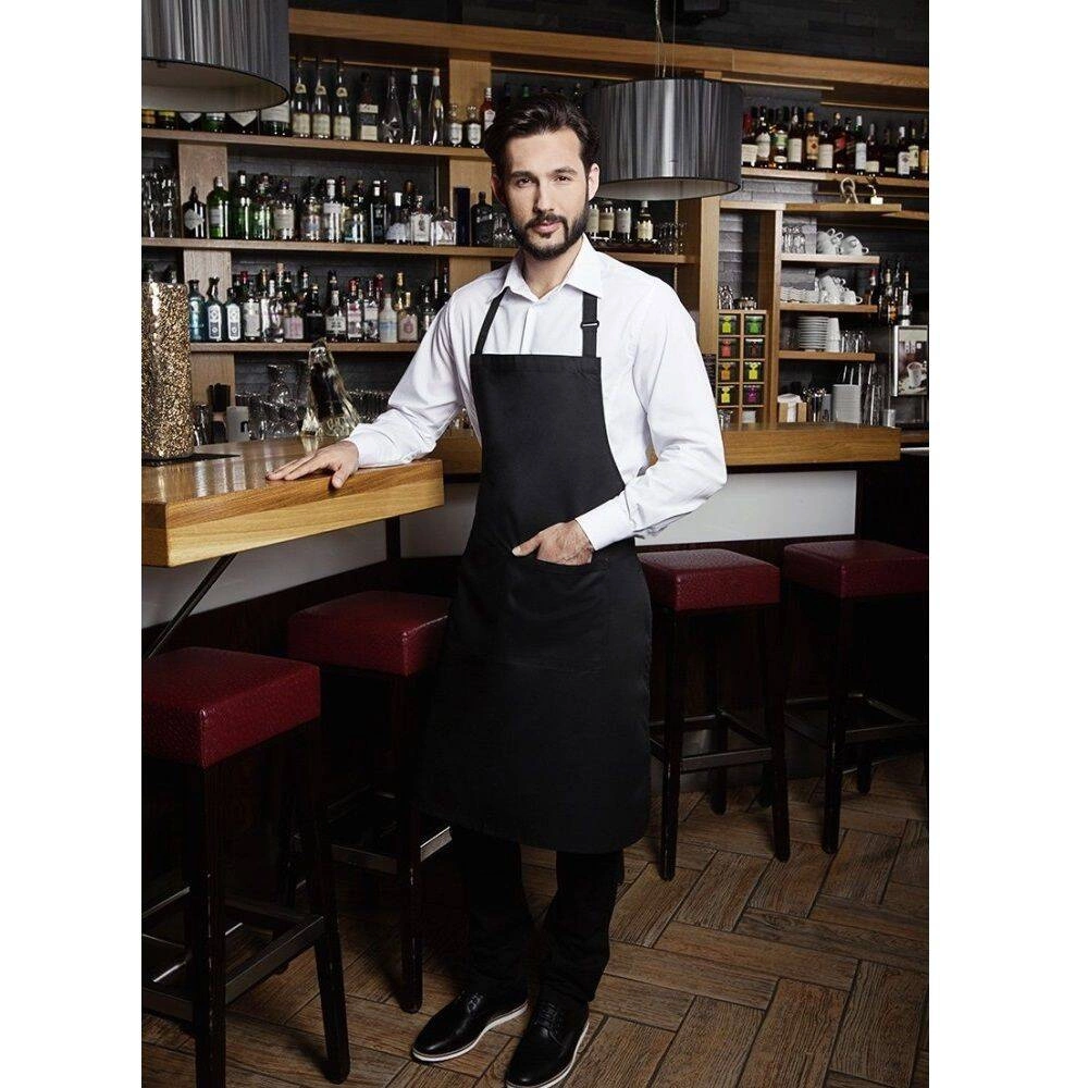 Základní kuchařská zástěra značky Karlowsky. Černá barva. Vyrobeno v 65 % polyester / 35 % bavlna. . Diagonální vazba. Rozměry 75x90 cm. Zástěra s popruhy z materiálu zástěry se zesílenými napínacími body - popruh na krk se sponou pro nastavení délky cca 70 cm - náplasťová kapsa se 2 přihrádkami (40 x 20 cm) Lze prát v pračce a čistit chemicky. Vhodné k žehlení.