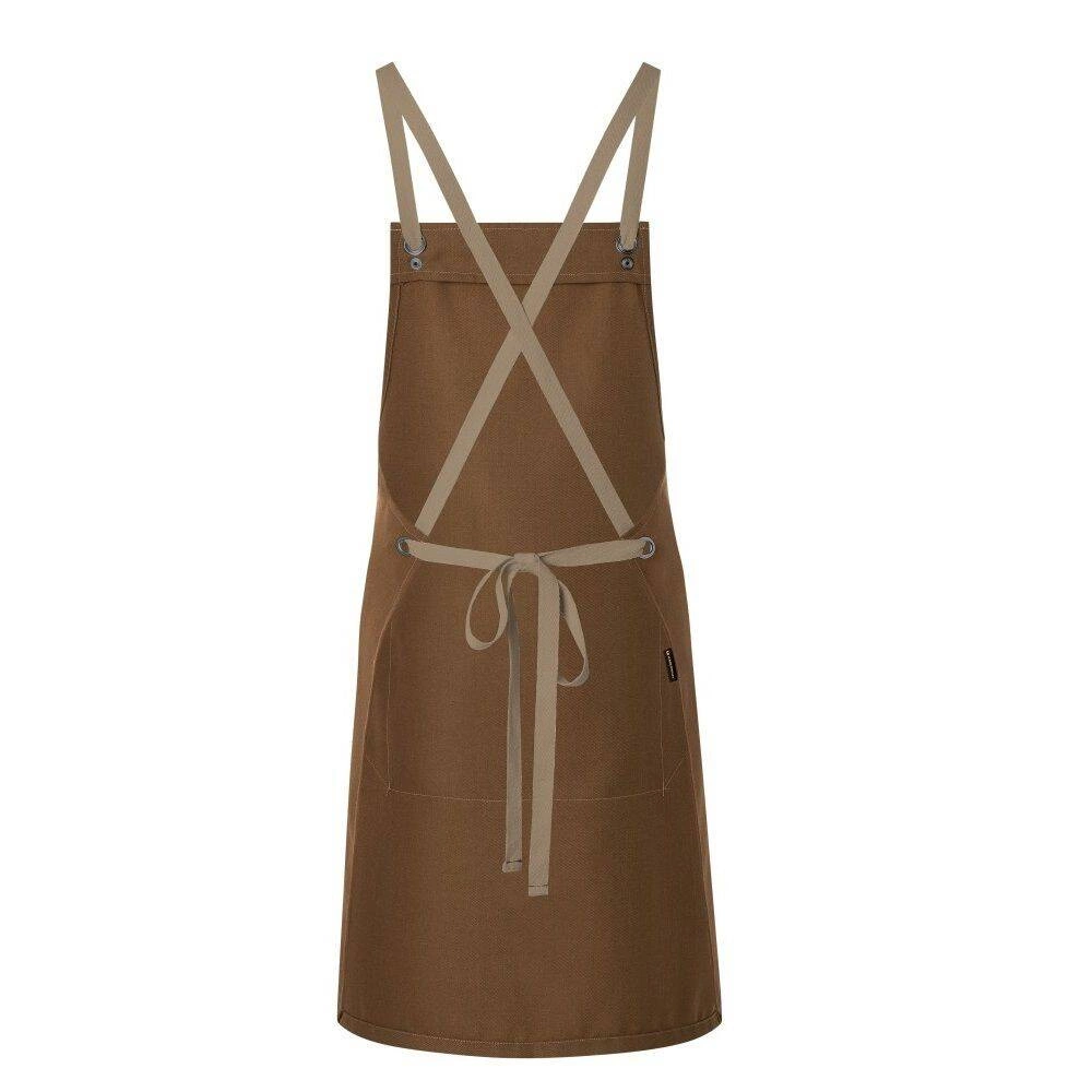 Zástěra Urban Nature X-Style s kapsou od Karlowsky. Vyrobeno z 65 % polyesteru a 35 % bavlny. Skořicová barva. Velikost 70 x 85 cm. Zástěra na šle s odnímatelnými kontrastními barevnými stuhami. Všechny stuhy lze snadno a rychle odepnout pomocí patentek a jejich nasazení na ramena uleví krku. Délku a výšku nastavíte zkřížením popruhů na zádech, jejich protáhnutím přezkami a následným zavázáním. Oba popruhy lze snadno odepnout a vyprat. Uprostřed všité kapsy: 1 velká přihrádka o rozměrech 39 x 20 cm, 2 boční přihrádky na tužky a 1 malá kapsa o rozměrech 17 x 11 cm. Lze prát při teplotě do 60 ° C. Nebělit. Žehlete při teplotě do 150 ° C.