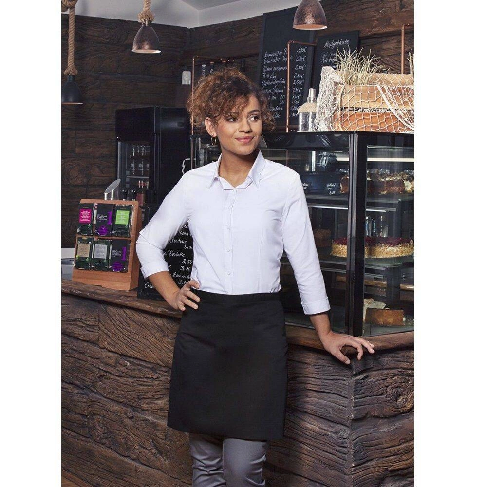 Zástera Basic od Karlowsky. Černá barva. Vyrobeno z 65 % polyesteru a 35 % bavlny. Keprová vazba. Rozměry 70 x 55 cm. Zavinovačka s bederním pásem ze stejného materiálu. Pásek vyztužený dalšími napínacími body.  Lze prát na 60 °C. . Nebělit. Nesušte v sušičce. Žehlete při maximální teplotě 150 °C °C.