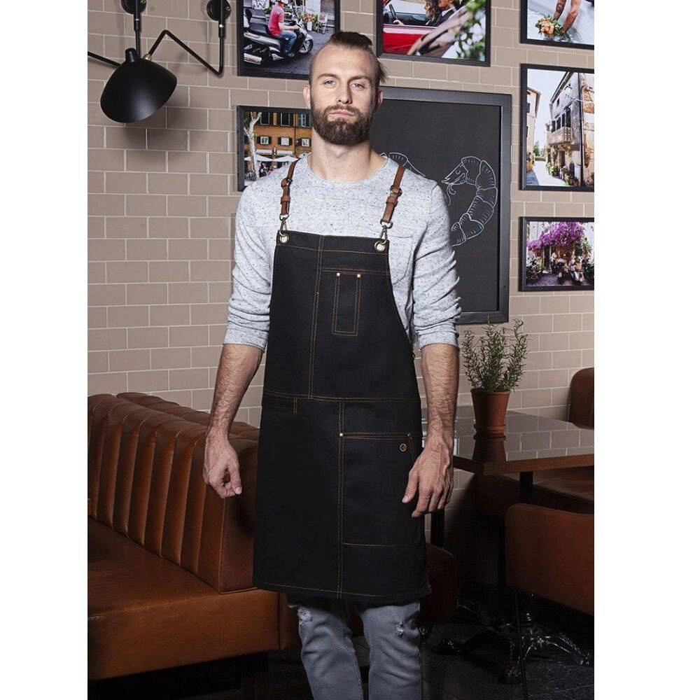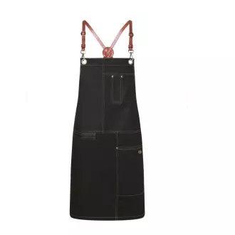 Zástěra Urban X-Style značky Karlowsky. Vyrobeno ze 100% bavlny. Černá barva. Velikost 68 x 80 cm. Kožené řemínky zástěry zkřížené na zádech odlehčují krku a snadno se zapínají a odepínají pomocí karabin. Délku popruhůós lze nastavit pomocí přezek a šířku v pase pomocí přídavného pásku v pase. Hnědé nýty a kontrastní prošívání dodávají jedinečný městský styl. Zástěra má navíc na levé straně všitou kapsu s přihrádkou na tužky (velikost 16 x 24 cm). Lze prát na 60 ° C. Nebělit. Lze žehlit při teplotě do 150 ° C.