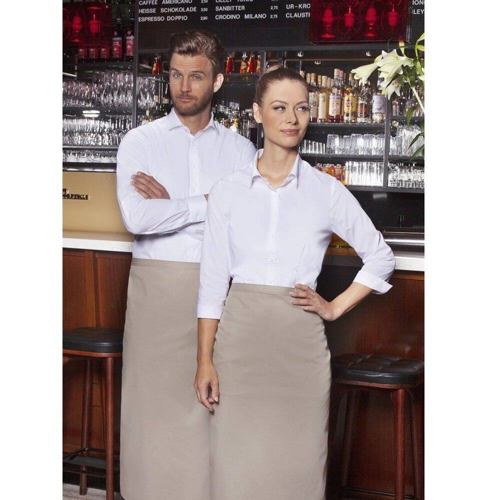 Ibiza bistro zástěra by Karlowsky. Písková barva. Vyrobeno z 65 % polyesteru a 35 % bavlny. Keprová vazba. Rozměry 110x90 cm. Zástěra s průběžným pruhem ze stejné tkaniny, se zesílenými zátěžovými body. Vhodná pro průmyslové praní a chemické čištění. Lze použít bělidlo Vhodné pro žehlení při max. 150 ° C a sušení při max. 60 °C
