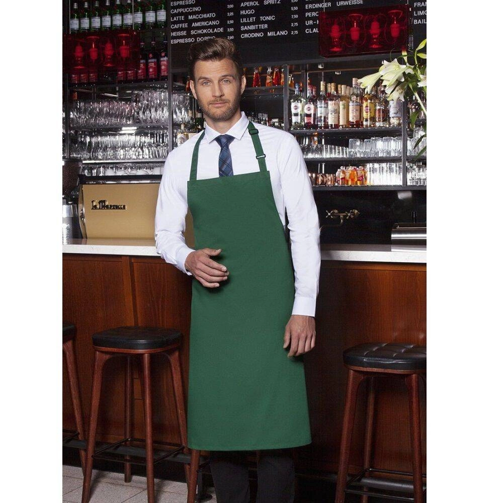 Kuchařská zástěra Basic značky Karlowsky. Barva lesní zelená. Vyrobeno v 65 % polyester / 35 % bavlna. . Diagonální vazba. Rozměry 75x90 cm. Zástěra s popruhy z materiálu zástěry se zesílenými napínacími body - popruh na krk se sponou pro nastavení délky cca 70 cm. Lze prát v pračce a čistit chemicky. Vhodné k žehlení.