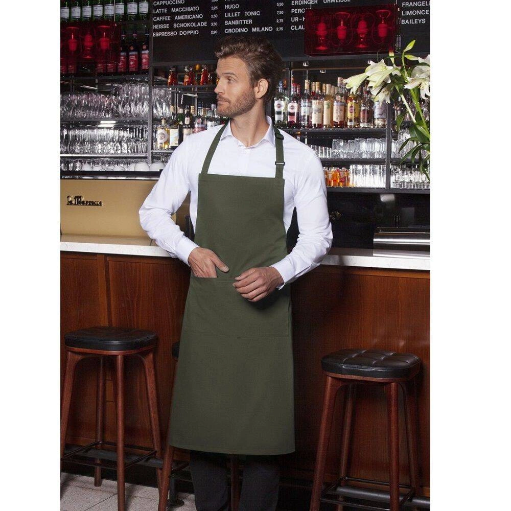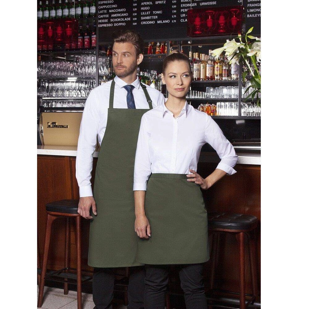 Popis k výrobku: Kuchařská zástěra Basic 75 x 90 cm s kapsou a přezkou mechově zelená