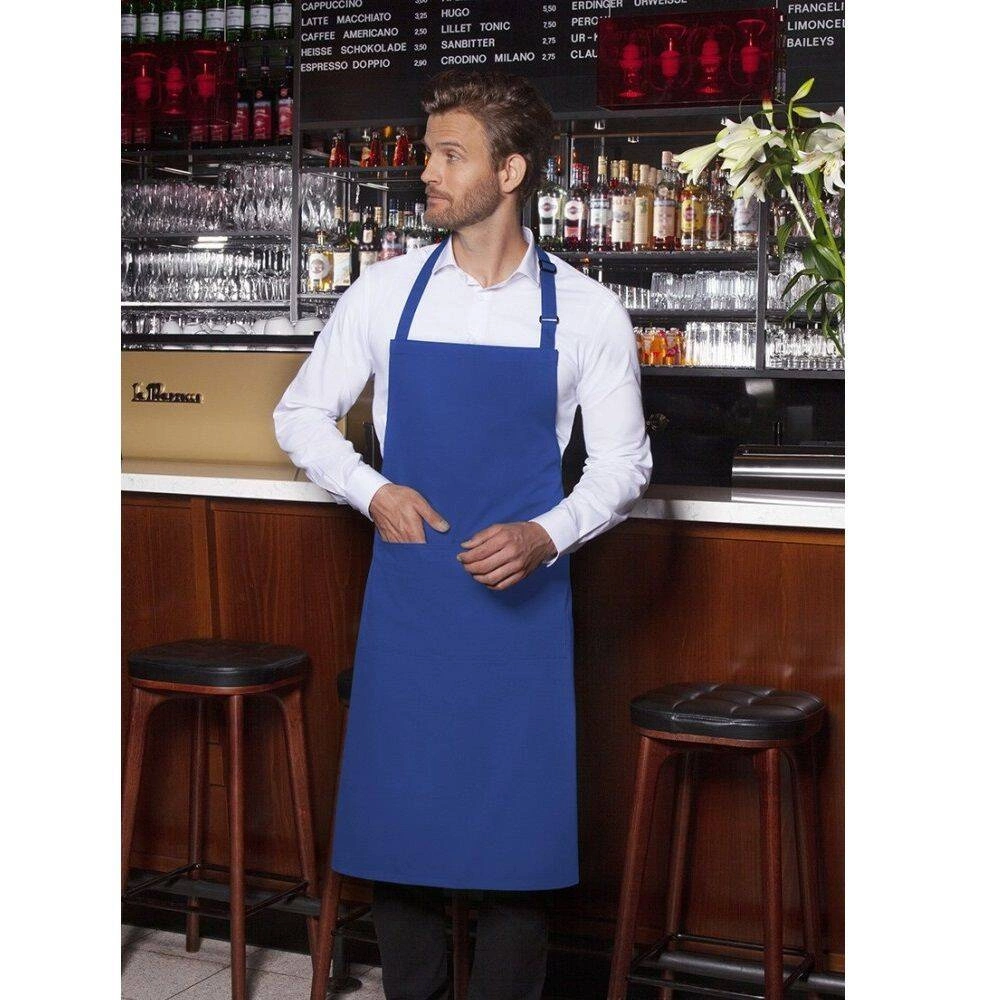 Popis k výrobku: Kuchařská zástěra Basic 75 x 90 cm s kapsou a přezkou modrá